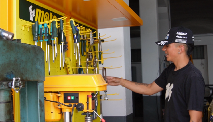 Ese recorrido fue clave para su inserción laboral. Tras acercar su currículum a distintos preparadores y equipos, Tiziano fue convocado para incorporarse a una estructura de Turismo Carretera, donde hoy trabaja en el taller colaborando en el armado y desarmado de los autos, el manejo de neumáticos, soldaduras y reparaciones, y aprendiendo distintas tareas del oficio.