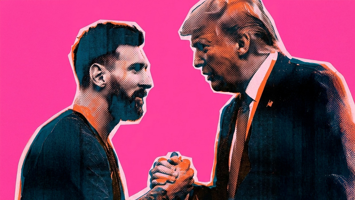 Messi a su lado, en un rol destacado, sonriendo ante las barbaridades de Trump.