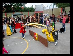 una feria alegórica a la edad feudal en una plaza del barrio. Disfraces,